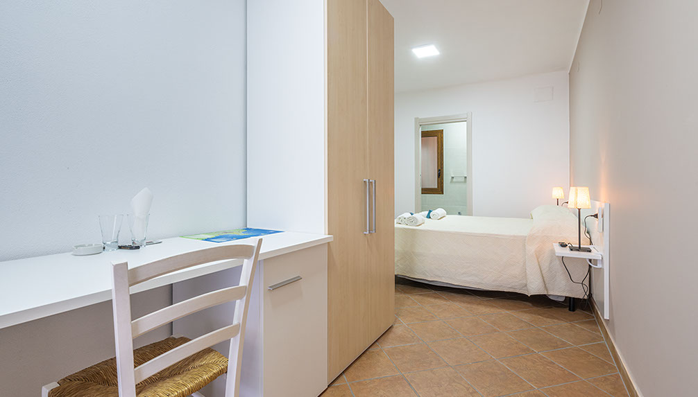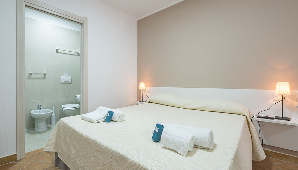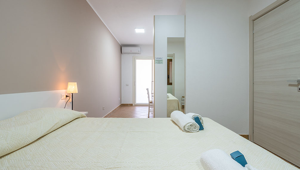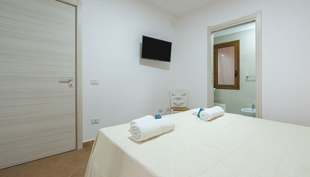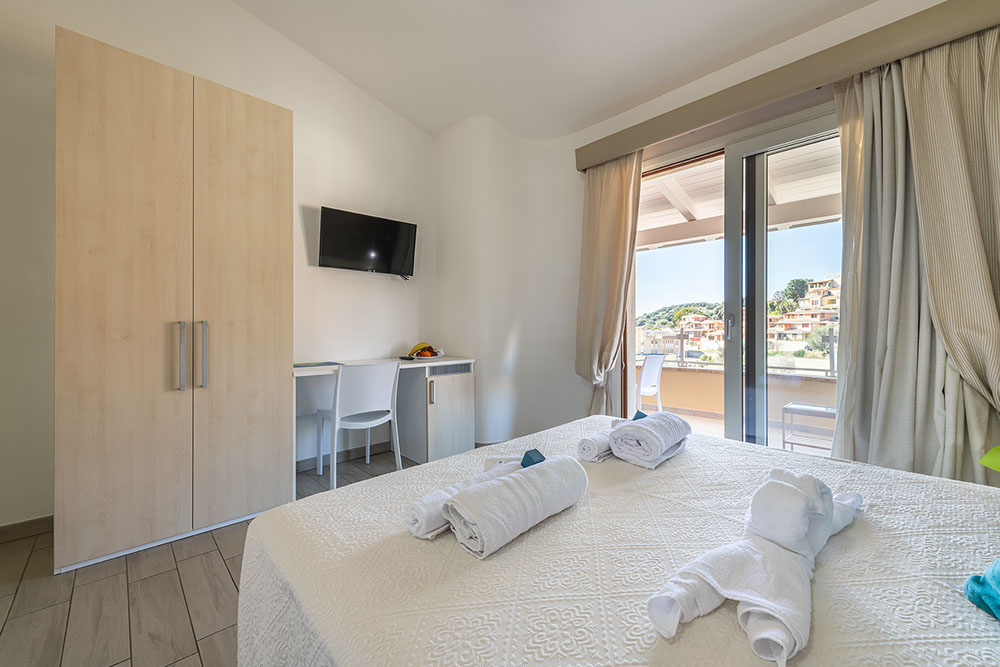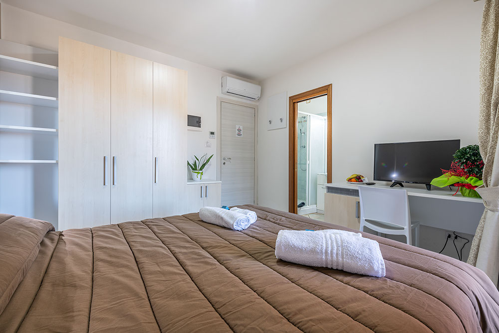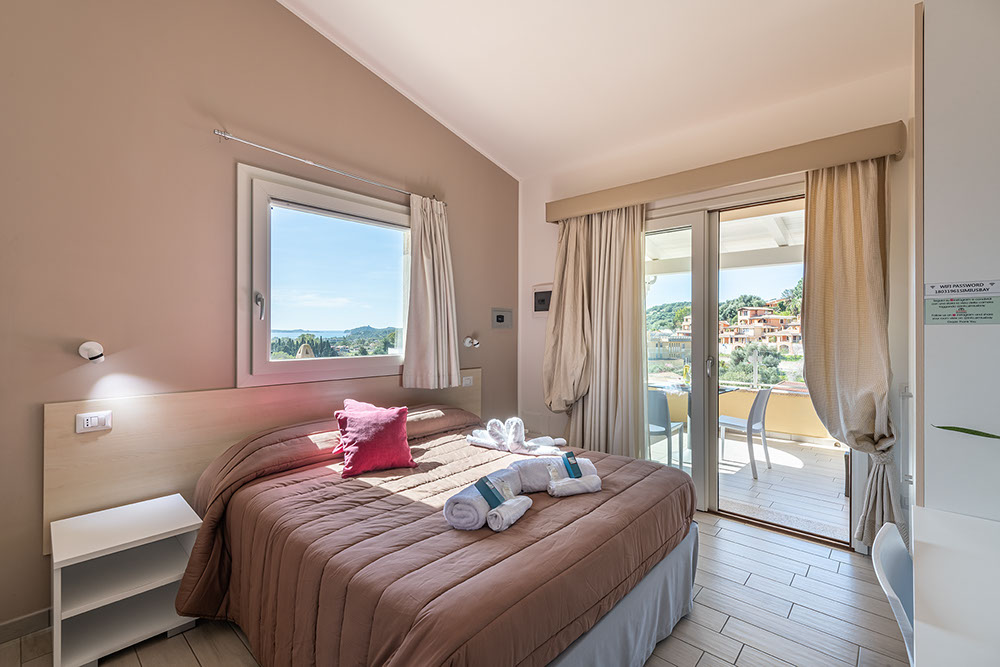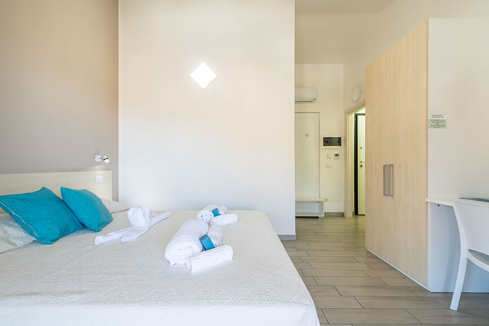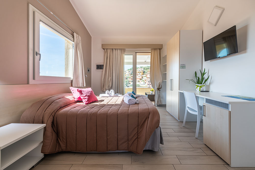 Camera doppia molto luminosa in struttura nuova con bagno privato, terrazzo e vista mare.