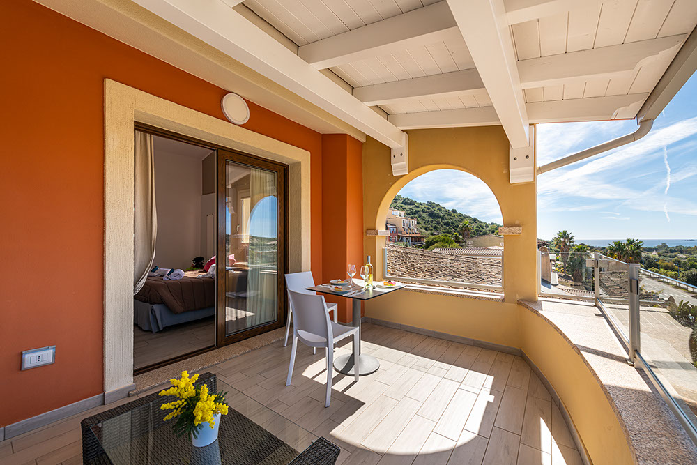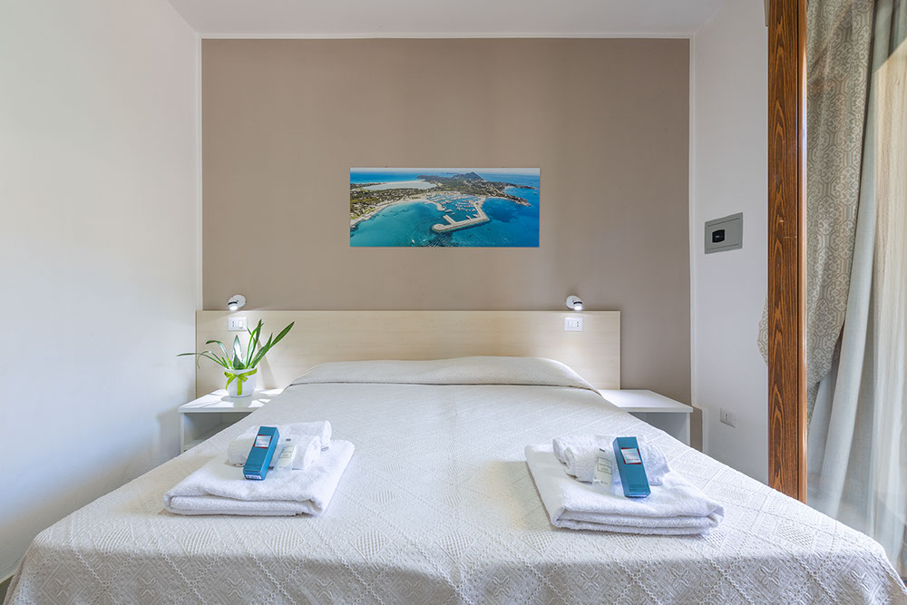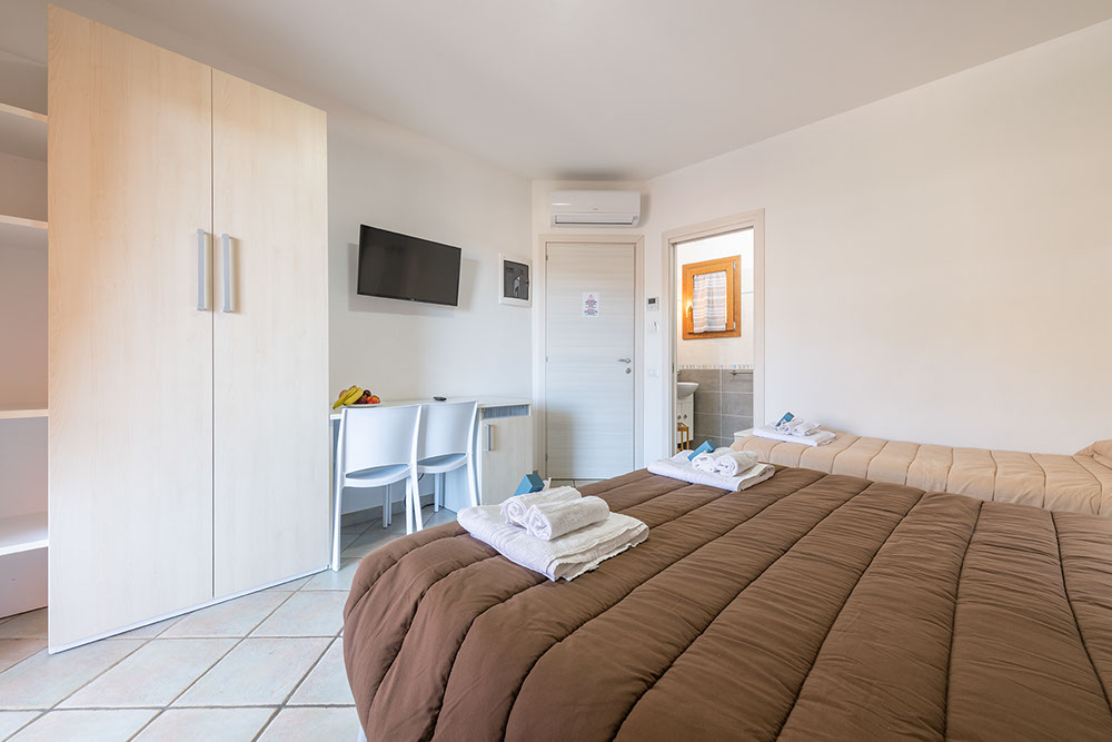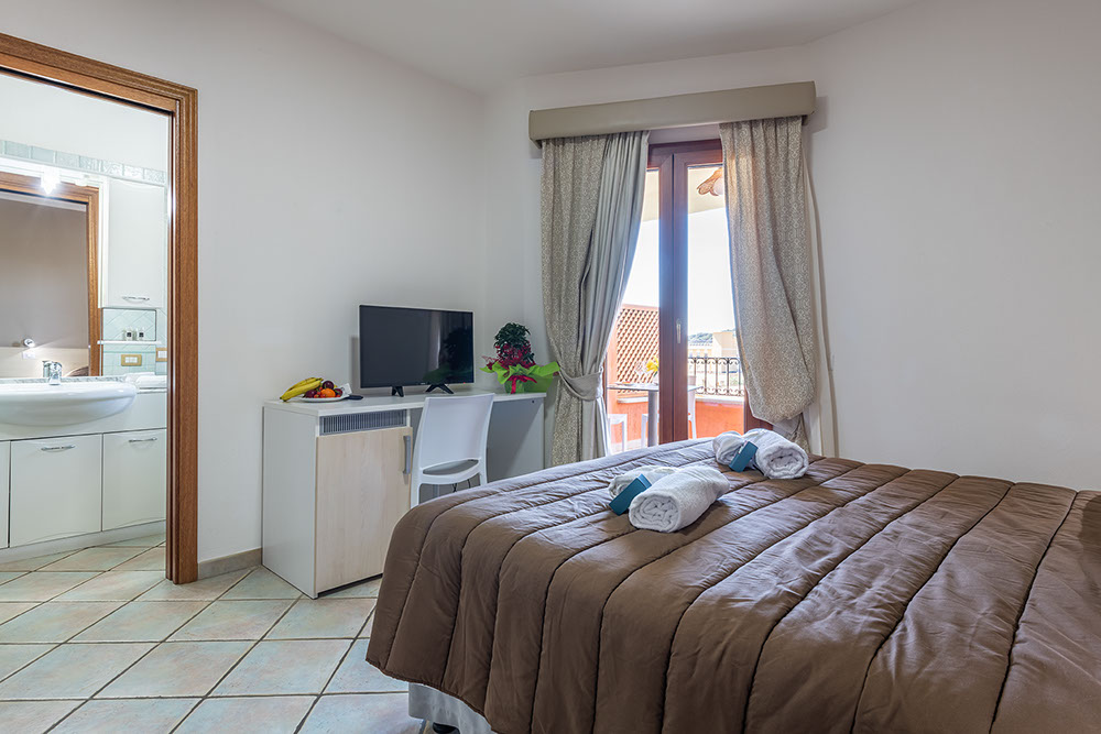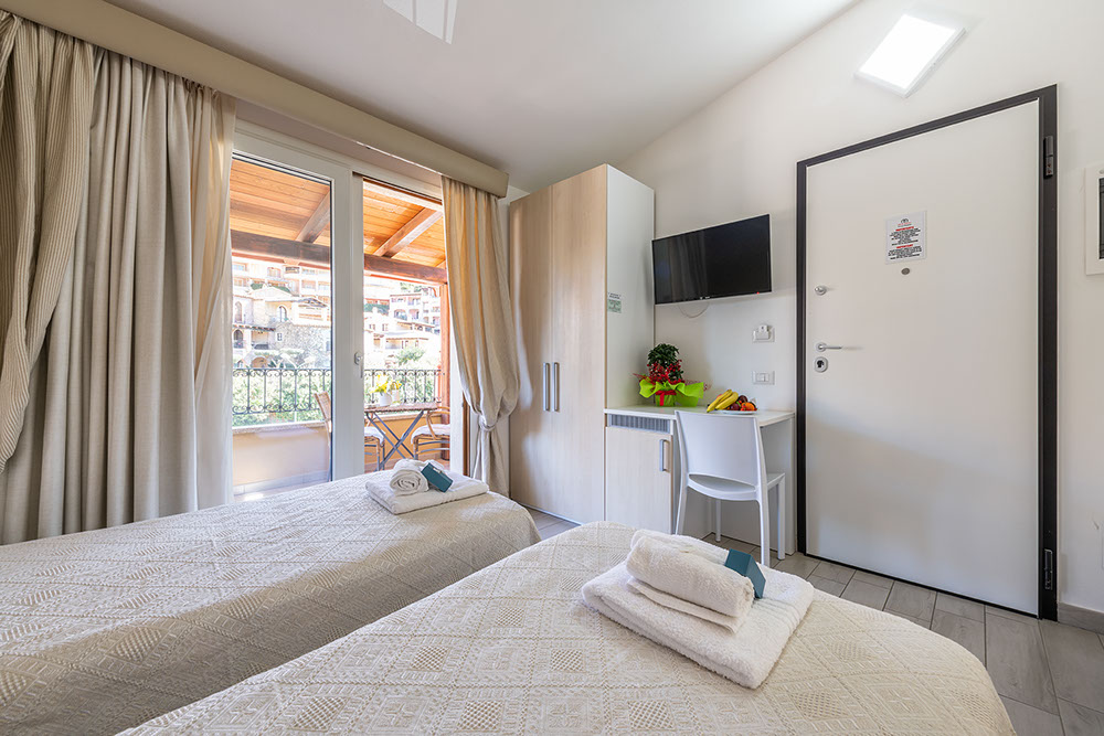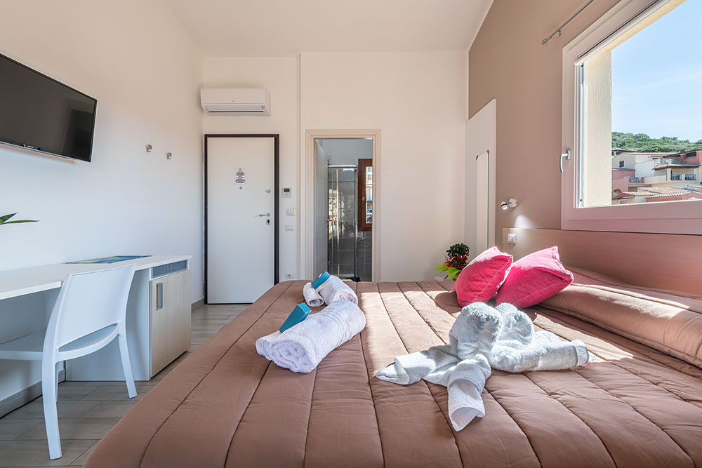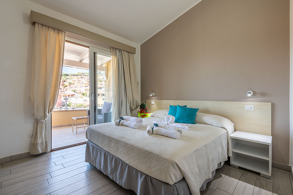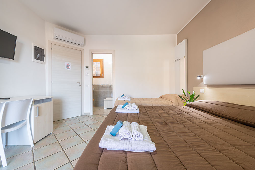 Camera doppia molto luminosa in struttura nuova con bagno privato, terrazzo e vista mare.