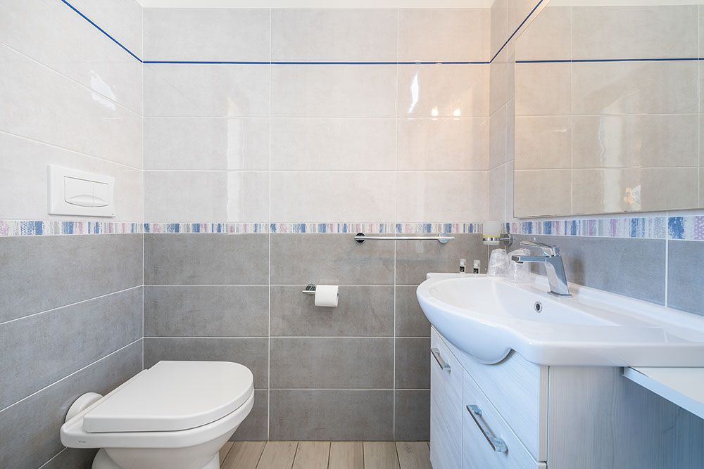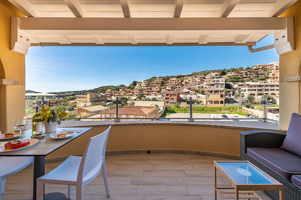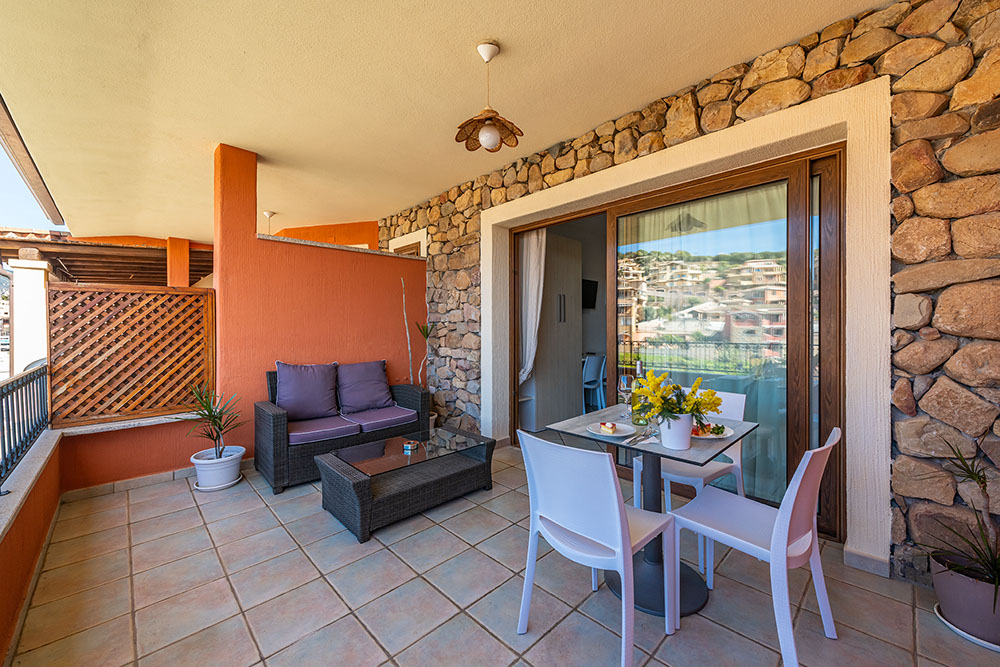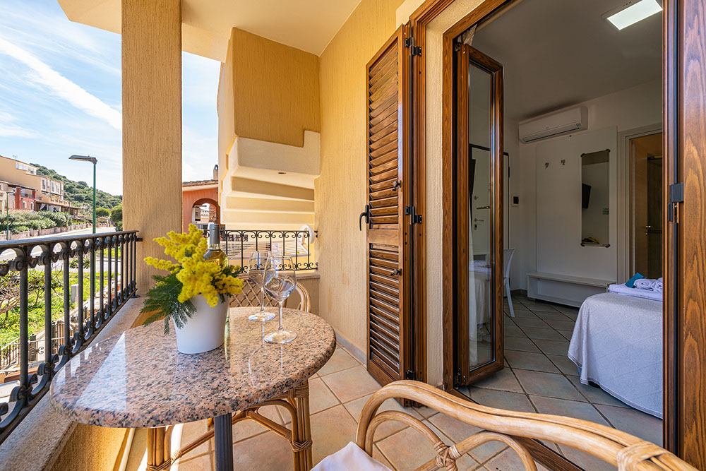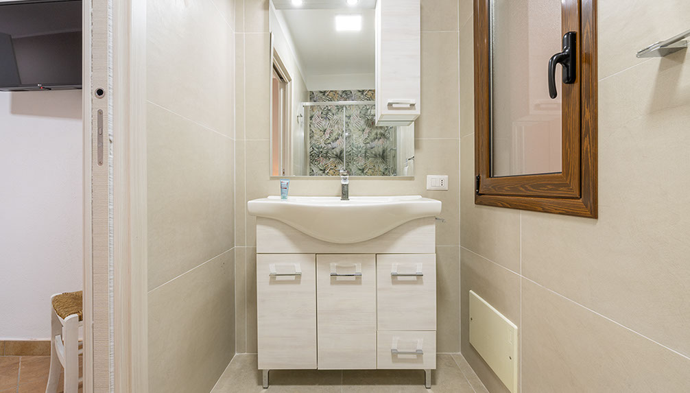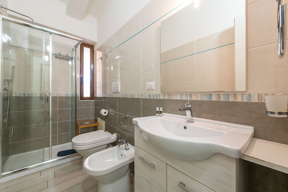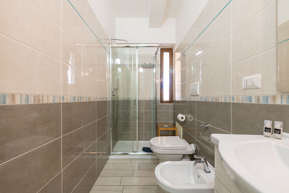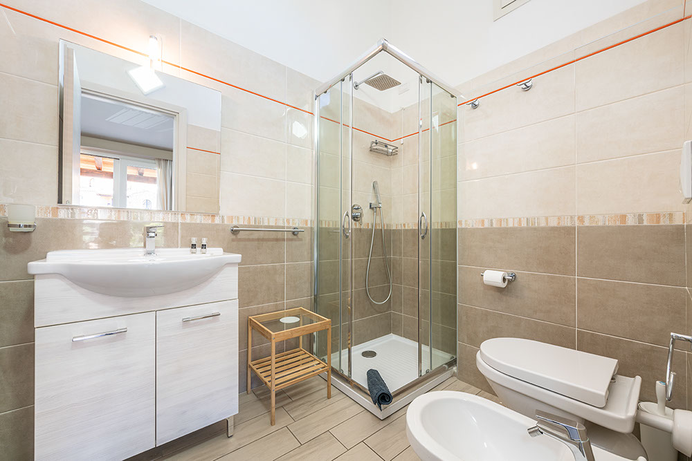 Camera doppia molto luminosa in struttura nuova con bagno privato, terrazzo e vista mare.
