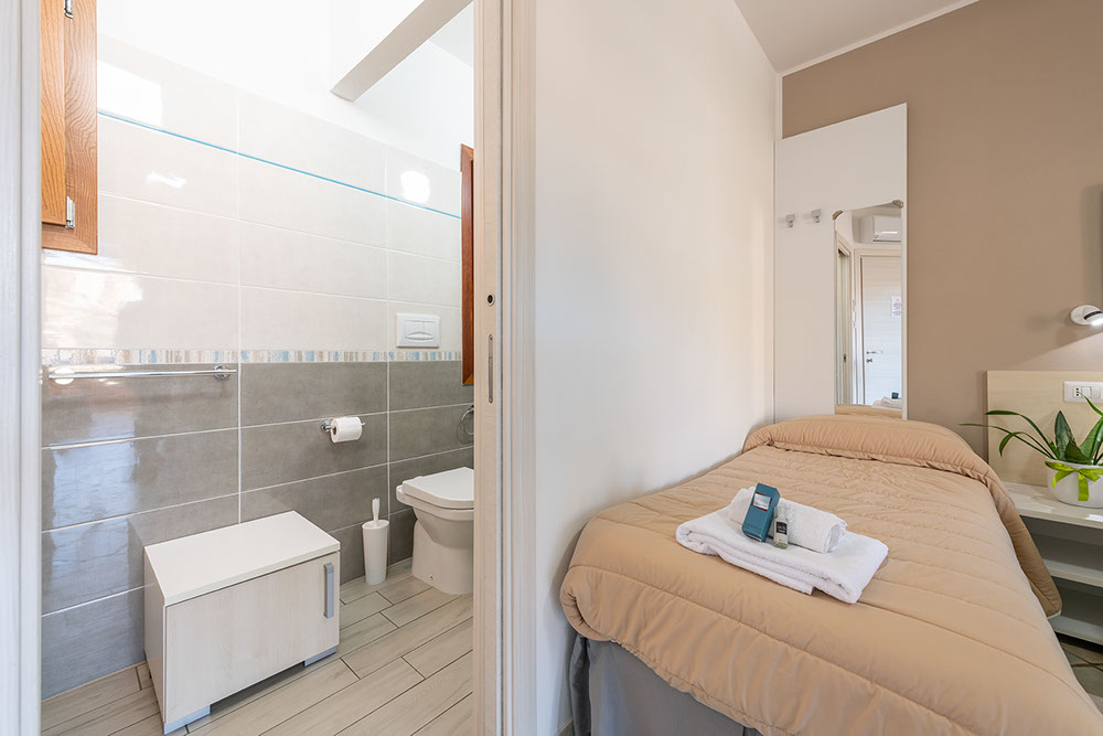 Camera doppia molto luminosa in struttura nuova con bagno privato, piccolo terrazzo.